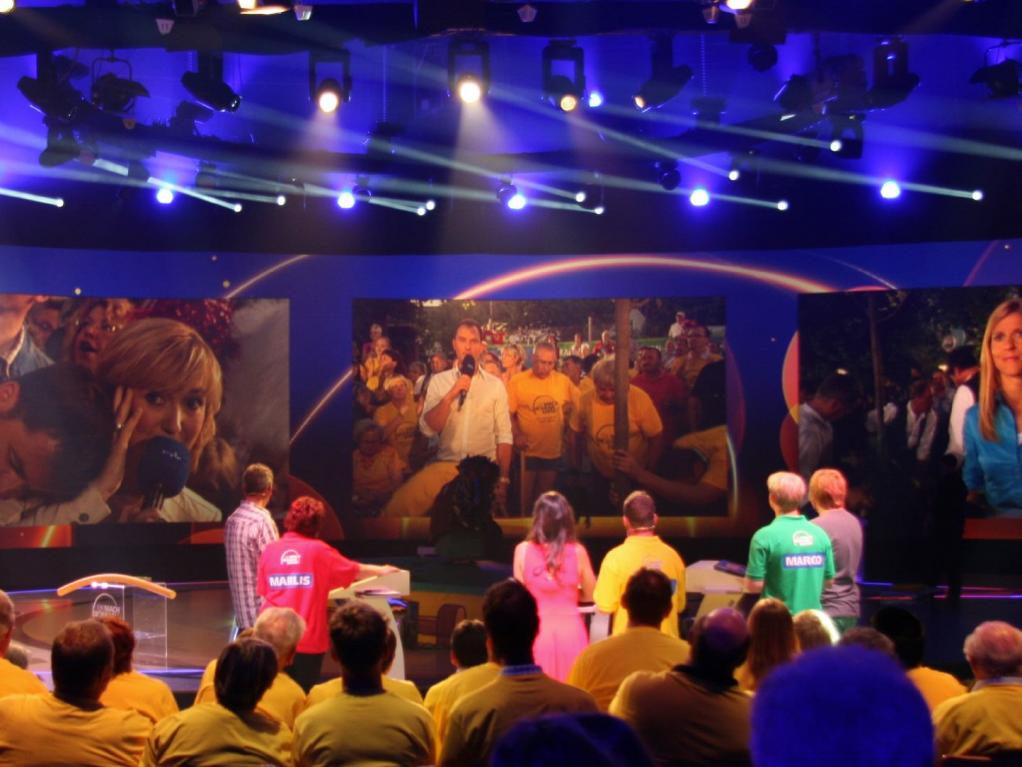 Liefern & Aufbau der Gameshow Technik für die 3 Kandidaten sowie des dazugehörigen Regiebereichs. Softwareprogrammierung von 6 Einzel-Game-Shows, mit einer zentralen Punkteverwaltung. Abbildung der Spielmasken sowie Auswertung von Interaktionen auf den Touch Monitoren der Kandidaten. Bespielung der 3 Frontscreens und der 3 Großprojektionen auf Regieanweisung (Sendungslogo, Logins, Antworten, Punkte etc.) Zusätzliche Ausgaben der Sendemasken als Key & Fill Signal. Implementierung von aktionsbezogenen Sound in unsere Software.